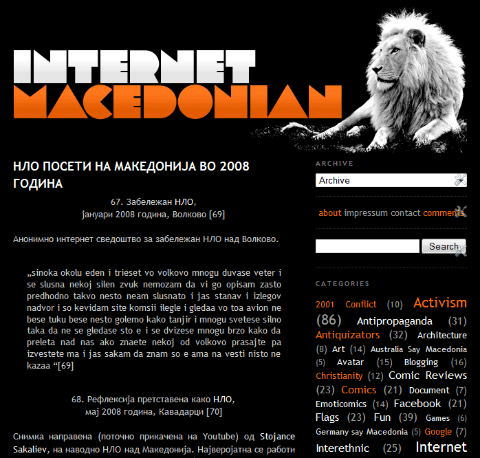 „...штета за нашите кои сеуште патат од немање основно знаење и се лесна мета на пропагандите, па залудно е тоа што водат патриотски блогови кога истовремено велат дека не им било познато дека Грбовите со Лавот му биле припишани првенствено на Александар Македонски. И сега се многу изненадени, никој порано не им кажал.
